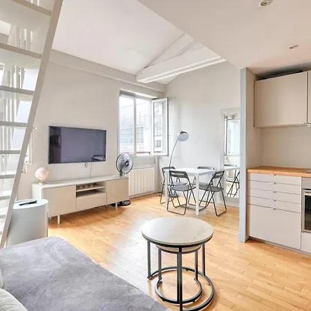 The apartment is situated in the Les Halles district of Paris, within reach of The Church of St Eustache. Located merely 6 minutes' walk from the triumphal Porte Saint-Denis Arch, this apartment is about 400 feet from Bonne Nouvelle subway station. Louvre Museum is approximately 1 mile away.